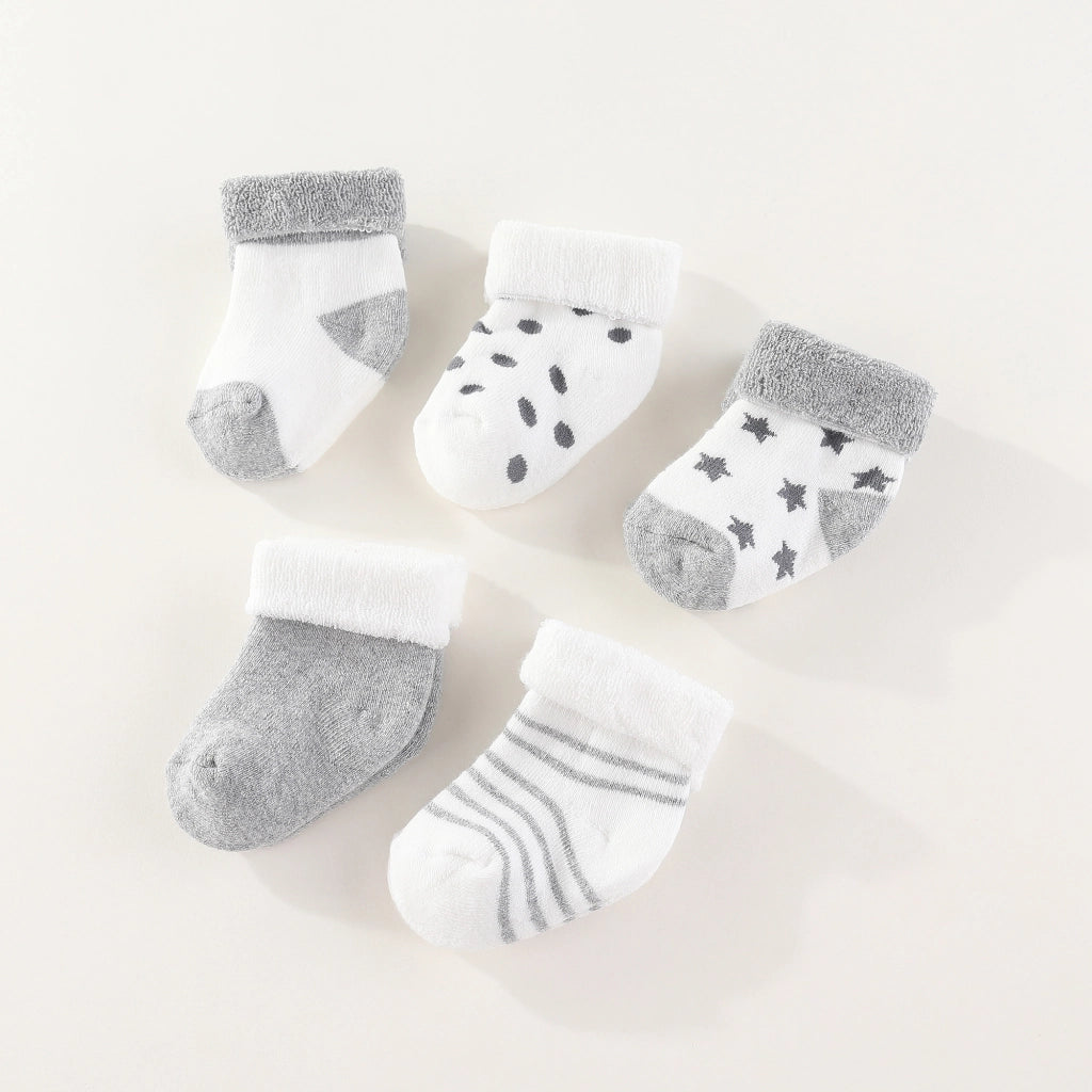 👶 100% cotton baby socks for newborns up to 12 months. Ideal unisex baby socks in 5 adorable designs. Essential infant supplies for both boys and girls. Perfect for your little babies!