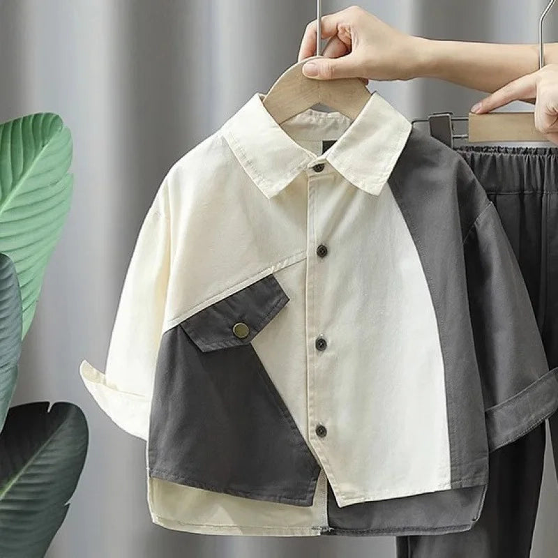 👦👕👖 Elevate your little man's style with this Boys Autumn Suit Cotton Shirt Pants Set!