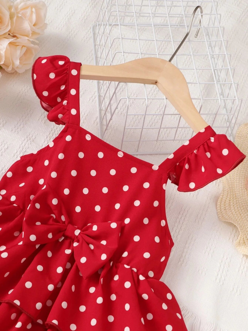 🌟 What it is - This adorable dress features flying sleeves, wave point details, a cake skirt, and a lovely bow, perfect for birthday celebrations and special occasions.