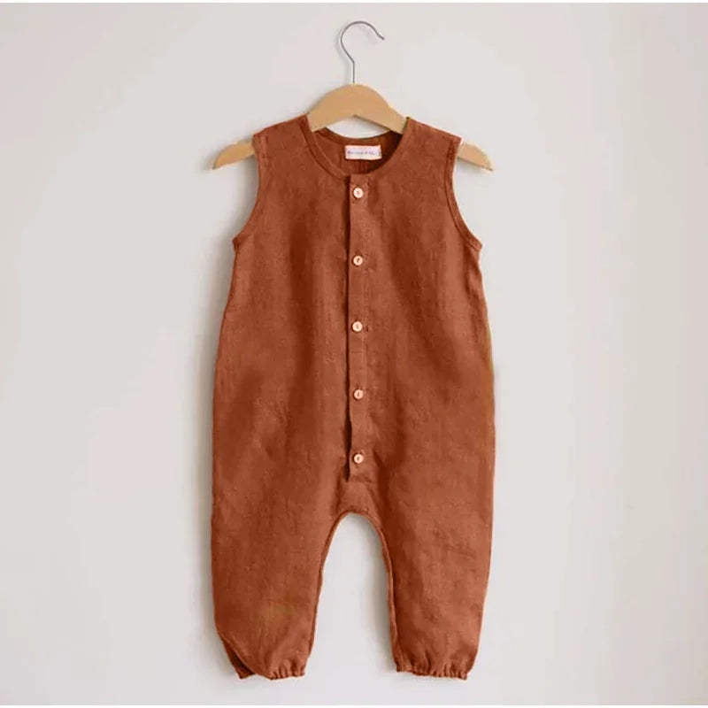 🌞 What it is - Made from 100% Cotton with a wooden button single-breasted design, this romper is perfect for your baby boy or girl.